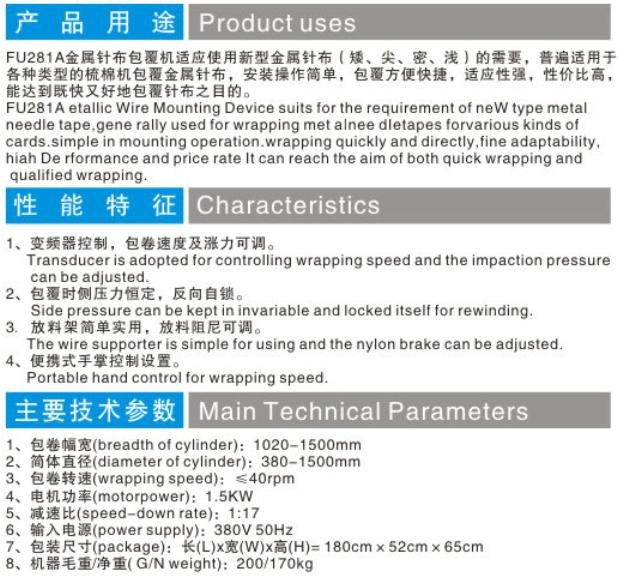 FU281A型金屬針布包卷器(變頻減速)的產(chǎn)品詳細(xì)介紹: