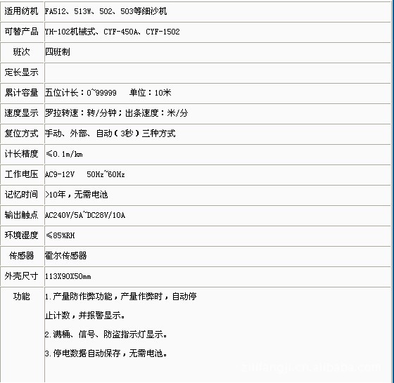 TYD-102A型(適用于FA506、507等細紗機,多個防******功能,******自動停止計數(shù)并報警)